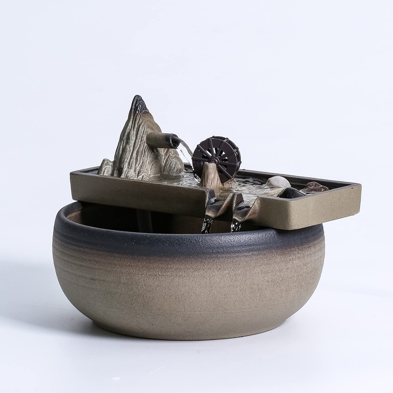 Ceramic Tabletop Fountain for Indoor Home Decoration Table Desk Office Patio (Brown)
