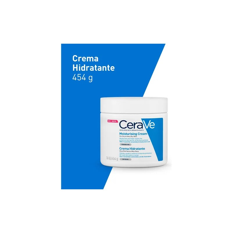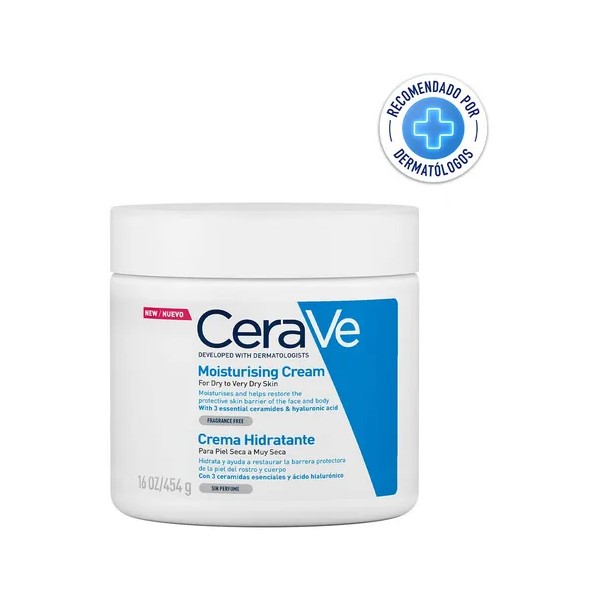CeraVe Crema Hidratante Piel Seca a muy Seca | Piel Hidratada hasta por 48 Horas | Con 3 Ceramidas Esenciales | Contiene Ácido Hialurónico | Desarrollada con Dermatólogos | 454ml | 16oz