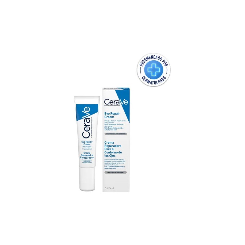 CeraVe Crema Reparadora para el Contorno de los Ojos | Fórmula Ligera | Mejora la Apariencia de las Ojeras y Bolsas | Rápida Absorción Sin Sensación Grasosa | 14ml | .5oz