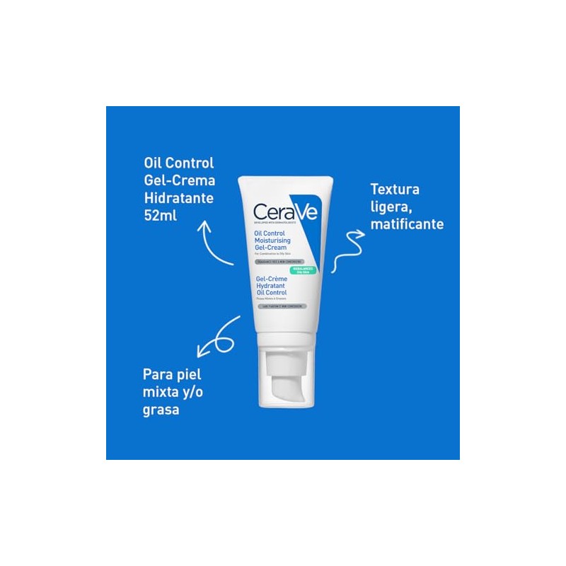 CeraVe Oil Control Gel-Crema Hidratante I Control de Brillo Hidratacin Facial I Formula Ultra-Ligera Para Piel Mixta a Grasa I 52ml