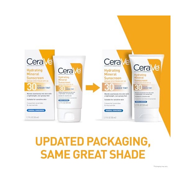 🌟 CeraVe Tinted Sunscreen with SPF 30 | Hydrating Mineral Sunscreen With Zinc Oxide & Titanium Dioxide | Sheer Tint for Healthy Glow | 1.7 Fluid Ounce 🌟