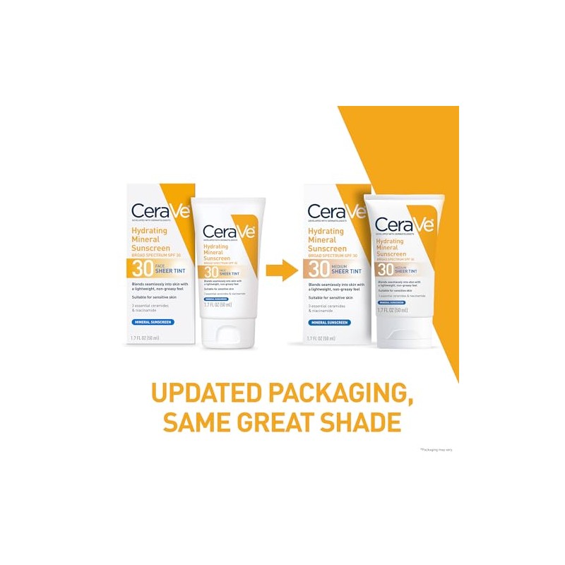 CeraVe Tinted Sunscreen with SPF 30 Hydrating Mineral Sunscreen With Zinc Oxide Titanium Dioxide Sheer Tint for Healthy Glow 1.7 Fluid Ounce