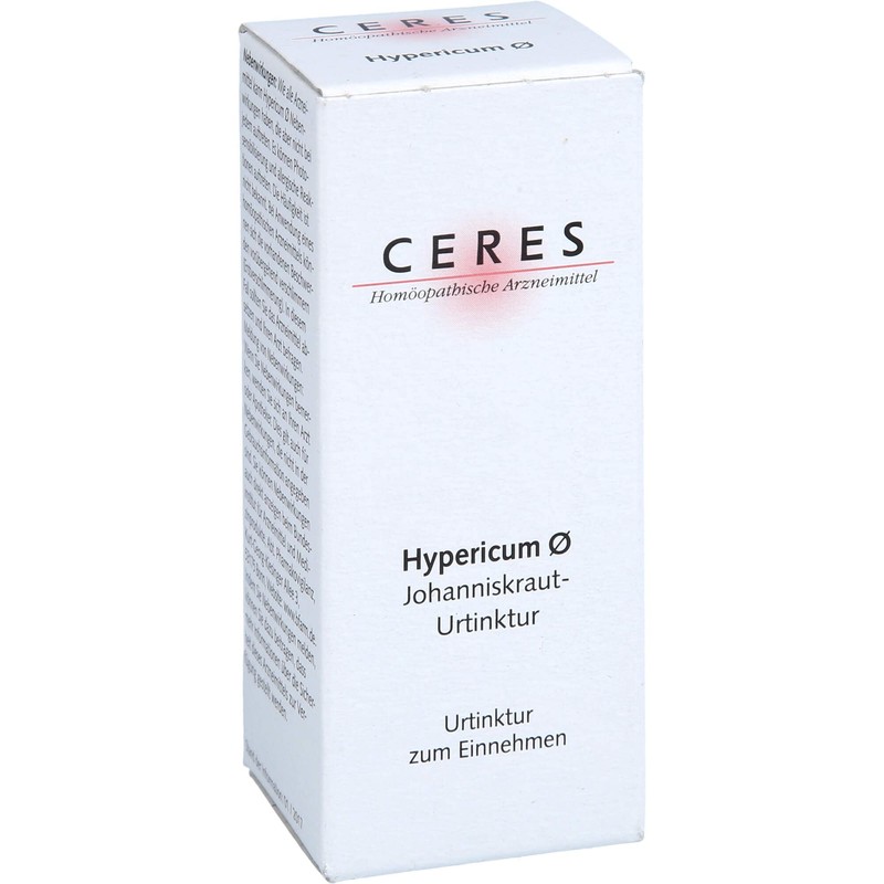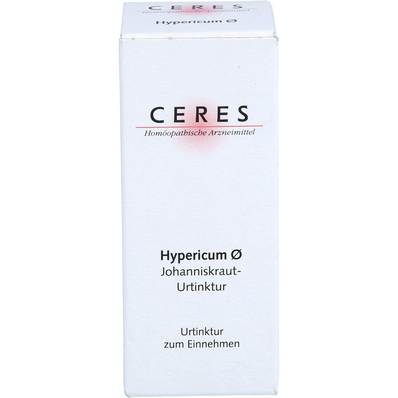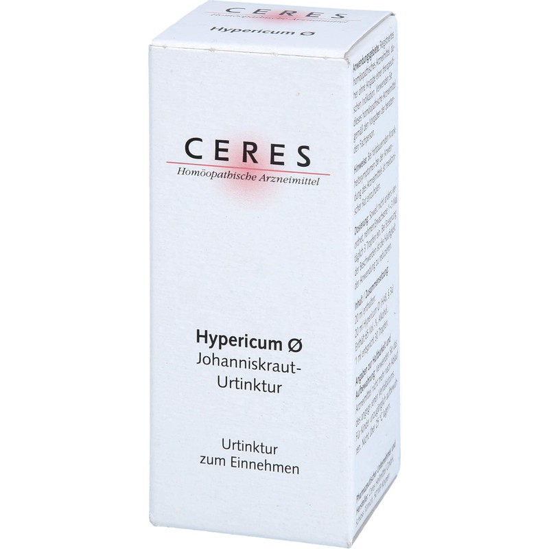 Important notes (mandatory information): Ceres Hypericum mother tincture. Area of application: registered hom opathic medicine, therefore without indication of a therapeutic indication. For risks and side effects, read the package leaflet and ask your doctor, doctor or in your pharmacy. Use information: according to the principle of Hom opathy. each treatment is every treatment with a individually tailored to the patient and their respective clinical picture, hom opathic medicine. The various medicines can be used for different diseases.