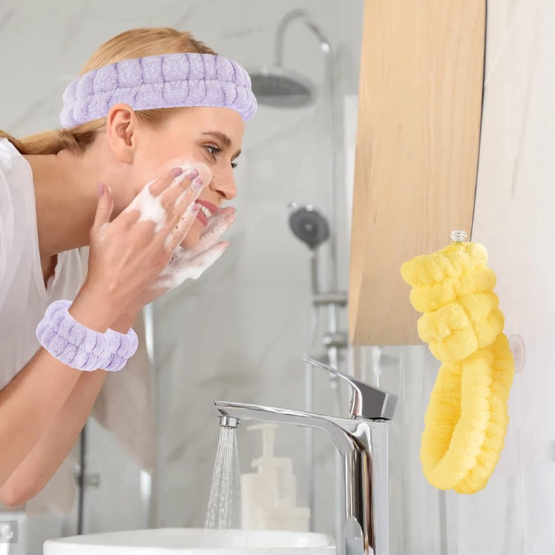 The spa headband and wristband set are made of skin-friendly microfiber, which has a strong water absorption capacity. These arm bands for washing face are a great help for keeping your arms dry when washing, and the microfiber headband keeps your hair from getting wet.
