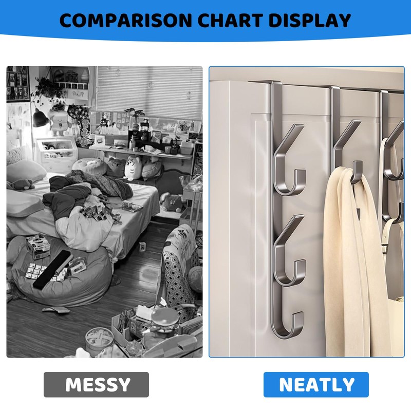 - No Tools Required: Easy Installation: Simply hang the hooks over the door—no drilling, screws, or glue needed. Ideal for creating instant storage and keeping everyday items such as hats, coats, or bags neatly organized.