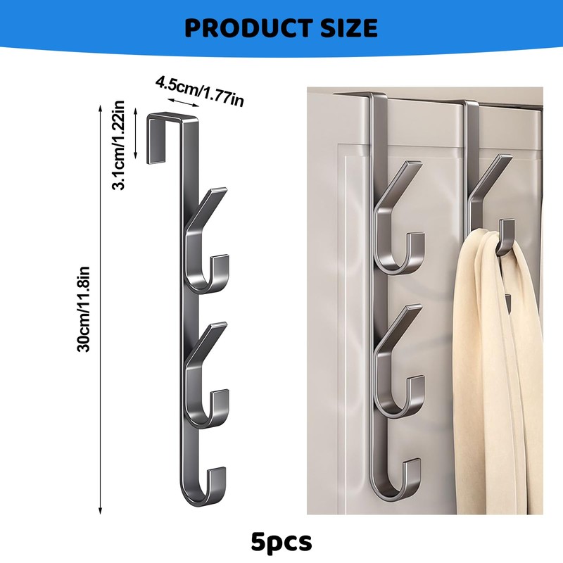Organise your space effortlessly with this 5-pack of heavy-duty over door hooks.