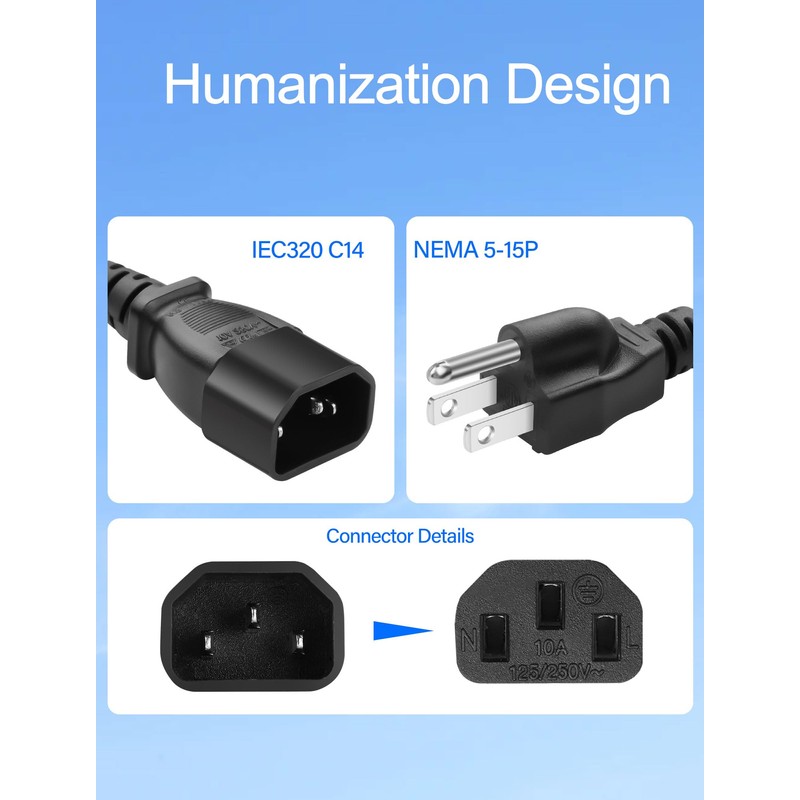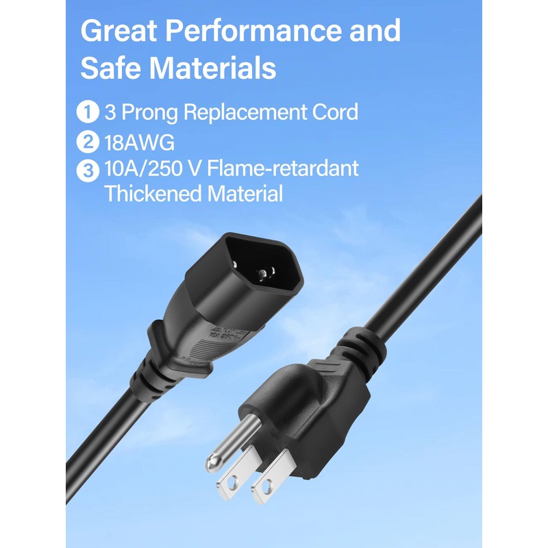 • Ready to Use - CERRXIAN 3-prong replacement cord (NEMA 5-15P to IEC320 C14). Just plug and play – instant reliable power