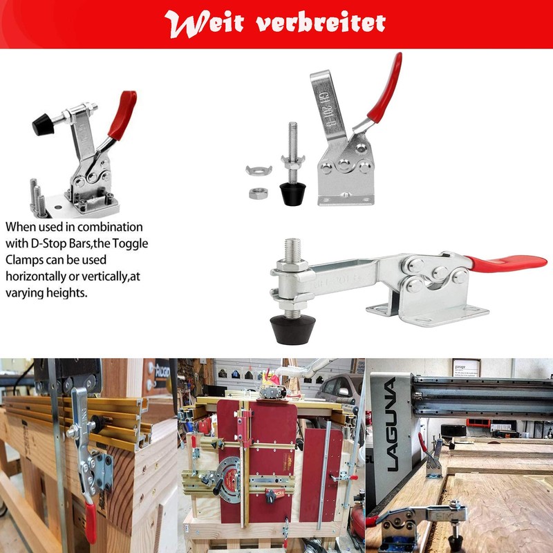 • Multi-purpose tool: toggle clamp can be used for machine operation, woodworking, welding, mould making, electronic assembly, etc. The toggle tensioner is stable, safe and reliable, shortens the working time for machining and assembling each part and has a high efficiency. It is an ideal tool for mounting equipment.