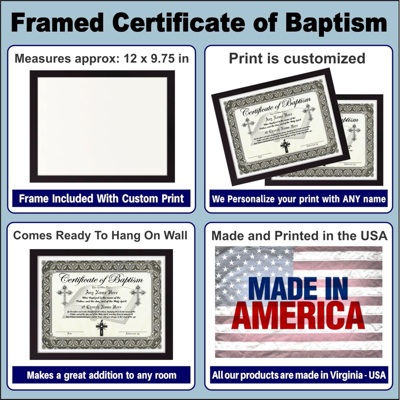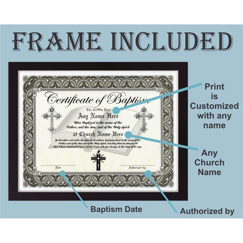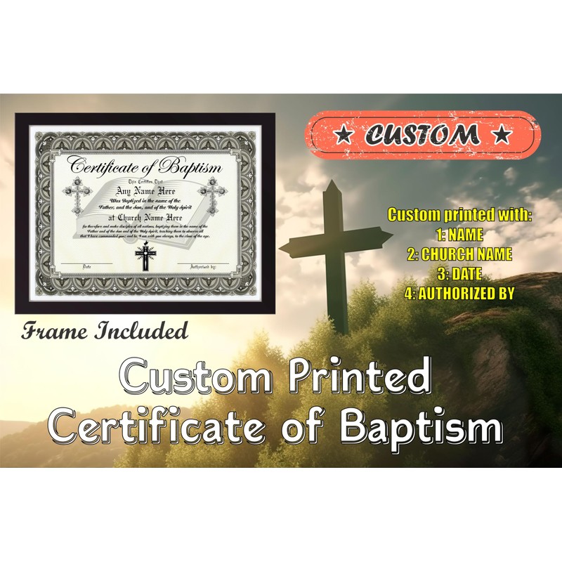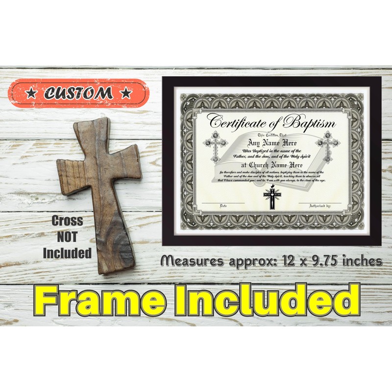 Certificate of Baptism - Custom with Any Name - Frame Included