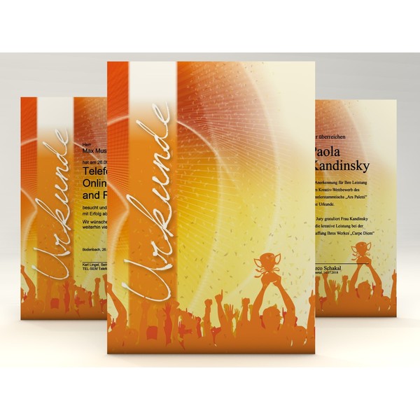 Giving or lending a certificate is always a nice idea and is always very good. The paperandpicture certificates have a grammage of 190 g/m² and are thus easily retracted and printed by all copiers and printers. Of course, the lovingly designed certificates or certificates can also be labelled by hand. With a matching picture frame, they are a decorative eye-catcher in any room. The certificates are used both privately and professionally or in a club.