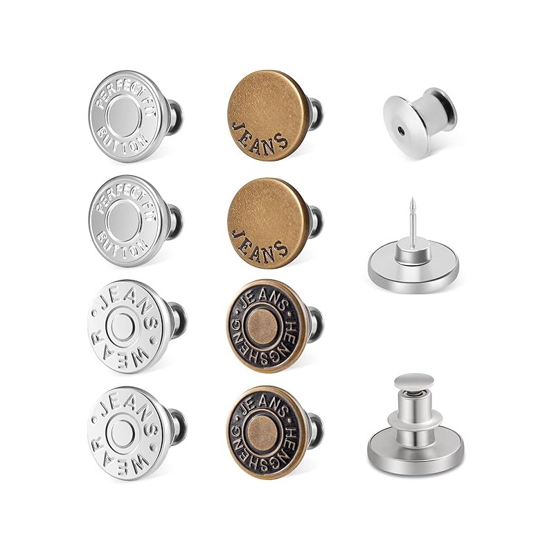Ceryvop 8 Sets Jeans Button Pins, No-Sew Adjustable Waist Tightener for Loose Jean Pants, Extra Replacement Buttons to Make Pant Smaller