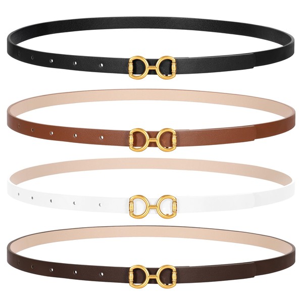 - Multi Colors - 4 pack women's skinny belts are perfectly adequate for your needs and you have different color choices for different outfits. These skinny dress belt can wear with pants, shorts, skirts for style or just to keep pants up, wear over shirts to taper to your figure.Overall, these thin faux leather belts offer both fashion and functionality, a staple accessory in anyone wardrobe.