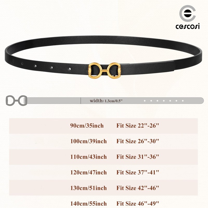 Women's Thin Belt Size---The Width of this thin waist belt is 0.5 inches. 6 sizes available, fit waist size from 25" to 46.These cute women skinny waist belts make every outfit way more flattering!