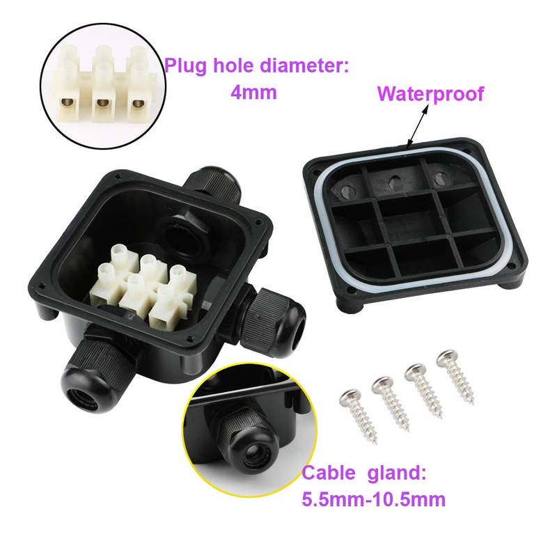 - ★ 3-Way Junction Box: New upgrade junction box, 1 input/2 output, internal 6 pole screw fix terminal, PG11 cable connector ground available from 5mm to 10mm cable diameter