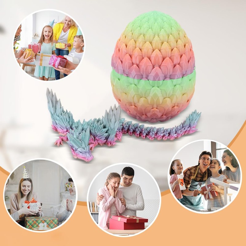 Cessfle 3D Printed Dragon in Egg, Fly Dragon Egggs with Dragon Inside Full Articulated Dragon Egggs for House of Dragon Crystal Fidget Dragon Egg Toys, Home Office Decor Executive Desk Toy