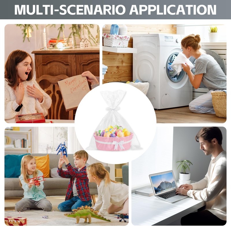 - 【Paquete cuidadoso listo para regalar】Tu compra incluye todo lo necesario para una hermosa presentación: 1 elegante cesta de mimbre con asas, 3 bolsas transparentes OPP y 3 cintas delicadas. Este juego completo hace que envolver sin esfuerzo, transformándolo en una impresionante bolsa de regalo para bebé o cesta de cumpleaños al instante.