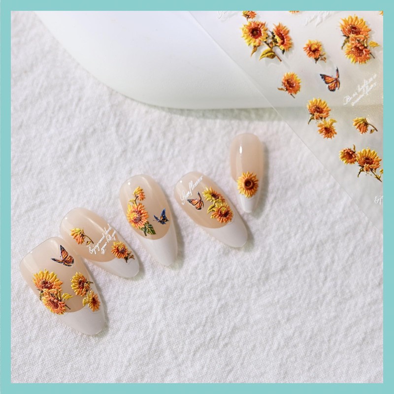 CESTSIREN Sunflower Nail Art Stickers, Embossed Floral Nail Decals, Self-Adhesive, Summer Spring Accessories for Women, Nail Decorations