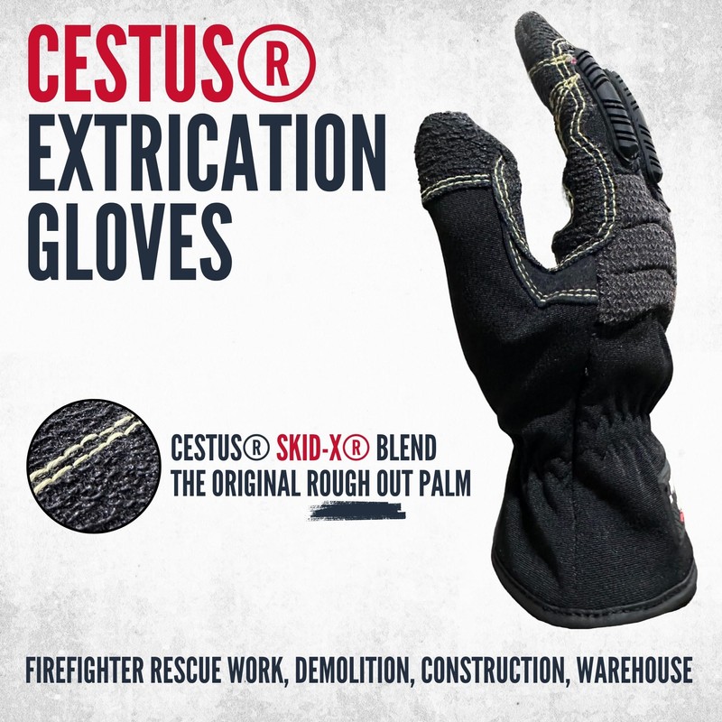 Cestus 4021, Extrication Gloves with Coarse Rough Out Palm, Firefighter Rescue Gloves (Black, Medium)
