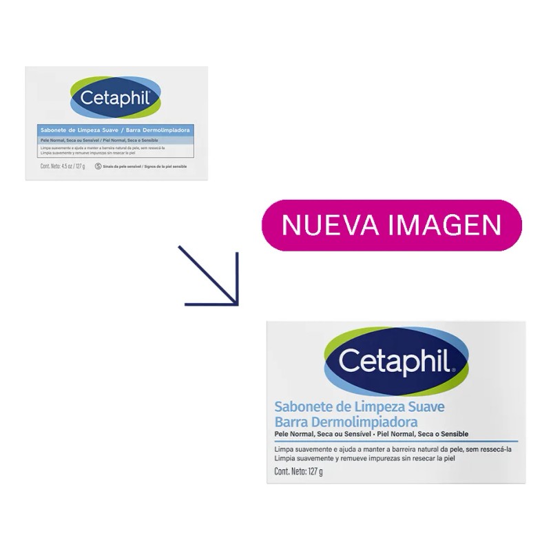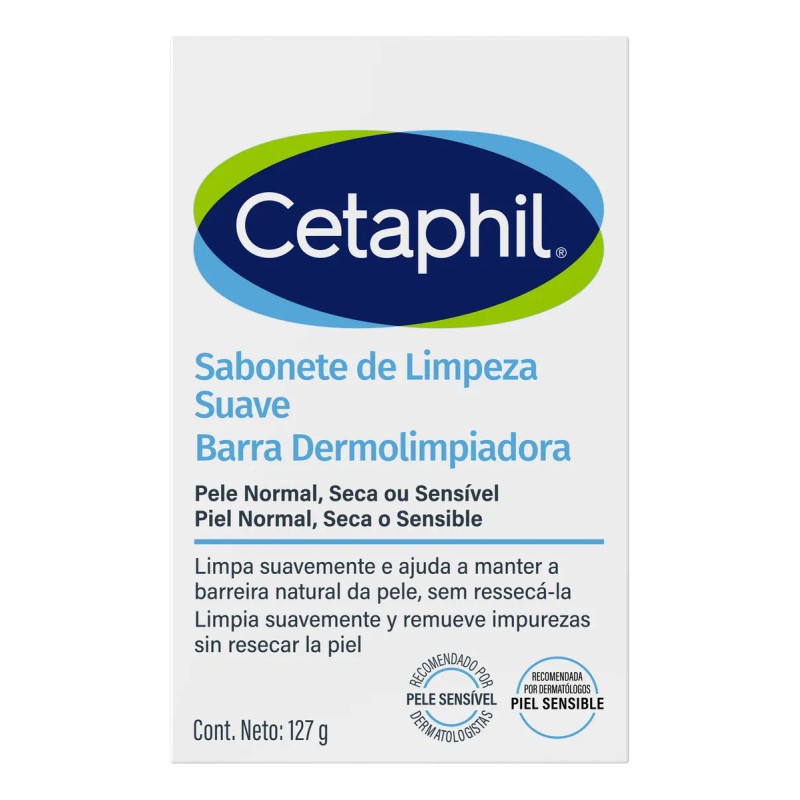 CETAPHIL Barra Dermolimpiadora de Limpieza Suave 127g Limpia suavemente sin resecar ni irritar la piel Recomendada por Dermatólogos para Piel Sensible.