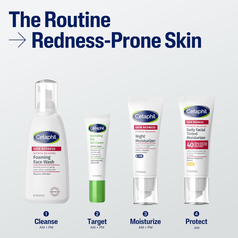 • CETAPHIL REDNESS RELIEVING FOAMING FACE WASH: Gently cleanses and soothes redness prone skin