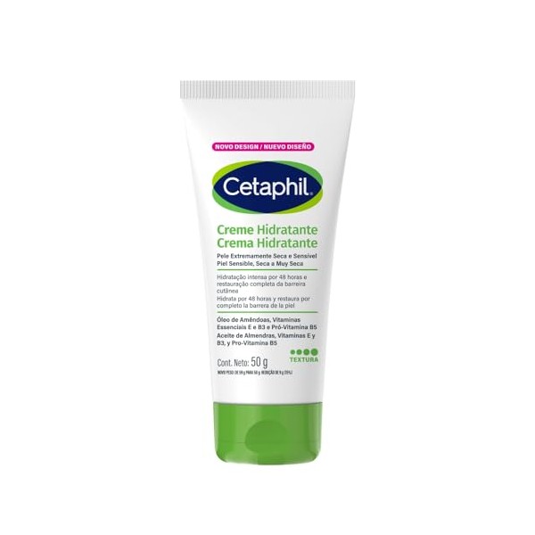 CETAPHIL Crema Hidratante 50 g  Hidratacin Intensa hasta por 48 h  Con Niacinamida, Vitamina E y Aceite de Almendras Dulces  Textura Rpida Absorcin...
