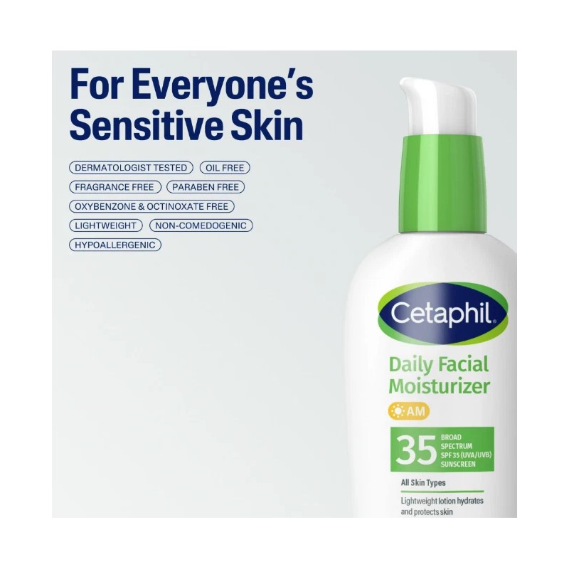 - Cetaphil Daily Facial Moisturizer For Dry or Oily Combination Skin SPF 35, 3 fl oz CETAPHIL DAILY FACIAL MOISTURIZER SPF 35: Three-in-one facial moisturizer hydrates, nourishes, and protects sensitive, combination skin