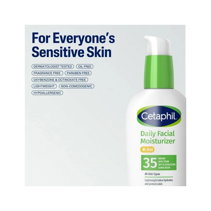 - Cetaphil Daily Facial Moisturizer For Dry or Oily Combination Skin SPF 35, 3 fl oz CETAPHIL DAILY FACIAL MOISTURIZER SPF 35: Three-in-one facial moisturizer hydrates, nourishes, and protects sensitive, combination skin