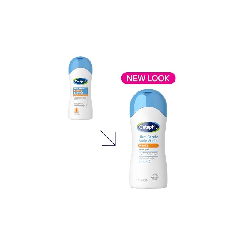 Cetaphil Gel corporal refrescante ultra suave, para piel seca a normal, sensible, 16.8 onzas, con aloe vera, calndula, vitamina B5, hipoalergnico,...