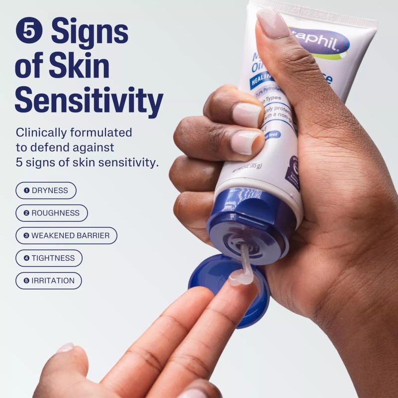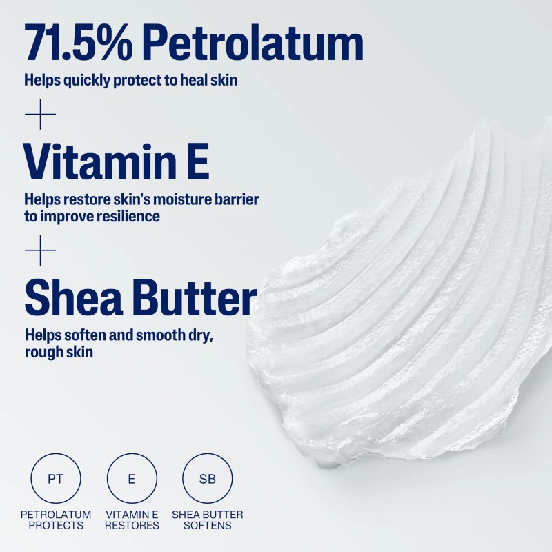 CETAPHIL Healing Ointment is clinically proven to heal, protect and hydrate extremely dry skin. This healing ointment is specially formulated with a high concentration of skin protectant petrolatum to quickly protect and heal dry, irritated skin. Enriched with shea butter to soften, smooth and hydrate, as well as vitamin E to improve skin's resilience. 89% reported noticeable improvement in their skin s texture in 1 week. This advanced formula absorbs quickly without leaving behind a greasy residue. Ideal for first aid kits to use on friction and minor burns, wound care for minor scratches and scrapes and even on chapped lips. This healing ointment can help hydrate and restore skin and cuticles left dry by repeated hand washing or use of hand sanitizer. Defends against 5 signs of skin sensitivity, including dryness and irritation. It's free of fragrances, preservatives, and lanolin, providing a non-irritating and hypoallergenic formula that suits your sensitive skin. Dermatologist tested, this gentle ointment is even suitable for infants as young as 3 months and is accepted by the National Eczema Association.