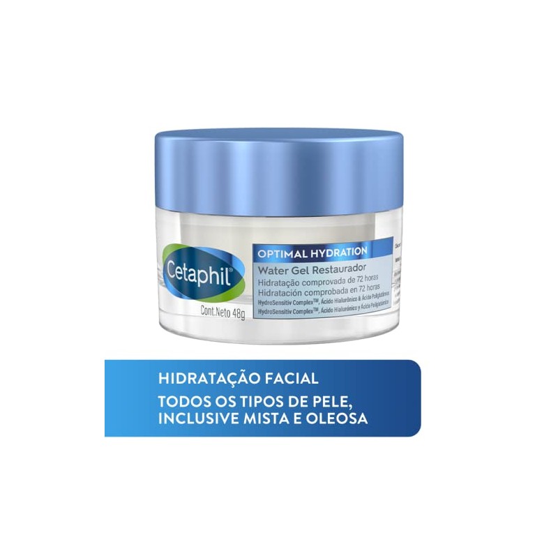 🌟 ⭐ CETAPHIL® Optimal Hydration Water Gel Crema Facial de Día con Ácido Hialurónico, Margarita Azul y HydroSensitive Complex, 48g, Piel Seca ⭐ 🌟