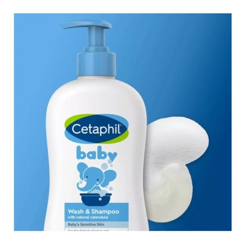 🧼 Cetaphil Baby Wash & Shampoo: gel limpiador suave con extracto de caléndula, ideal para cuerpo y cabello. Limpia sin irritar y deja un aroma delicado y reconfortante.
