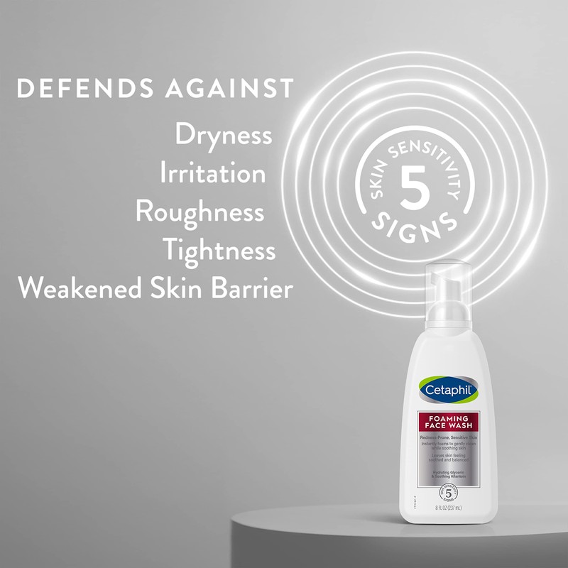 CETAPHIL Redness Relieving Foaming Face Wash For Sensitive Skin , 8 Fl Oz , Gently Cleanses & Calms Sensitive Skin Without Over Drying, (Packaging May Vary)