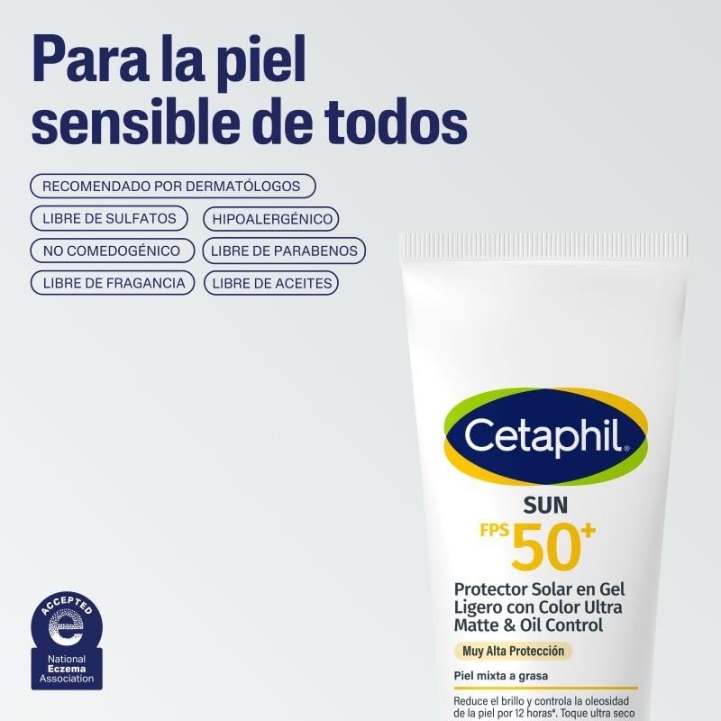 Cetaphil - CETAPHIL® Sun FPS50+ Protector Solar en Gel Ligero con Color Ultra Matte, 50 ML, Piel Grasa y Sensible