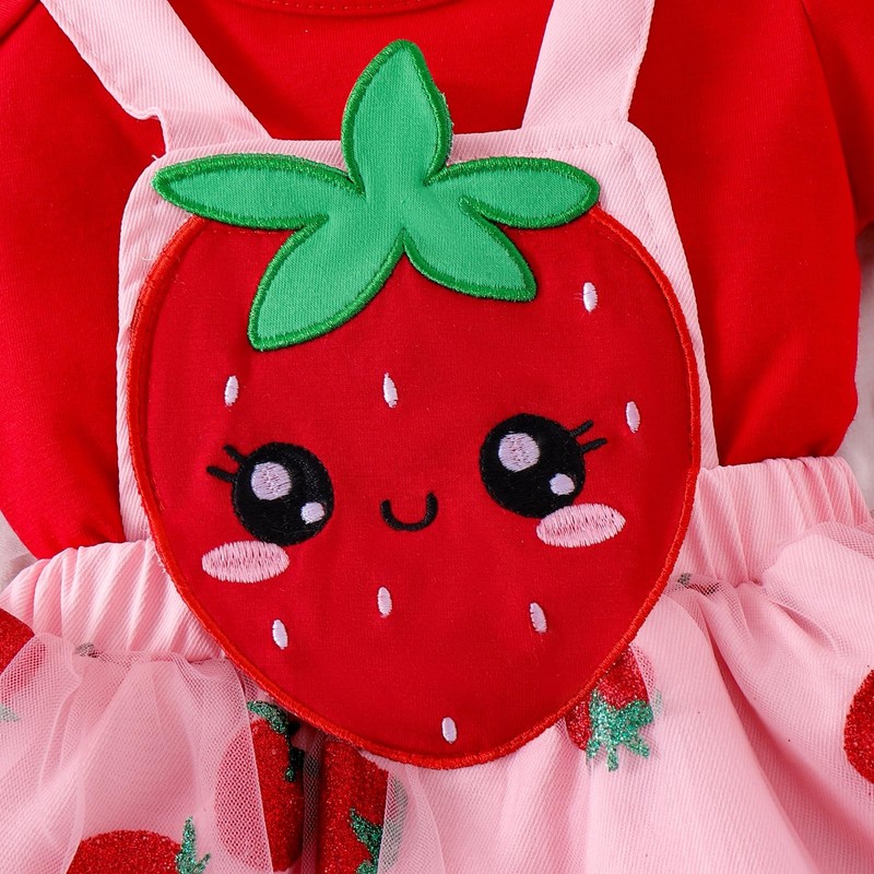 CETEPY Baby Clothes For Girls Ruffle Short Sleeve Romper Strawberries Print Mesh Suspender Skirt Bow Headband Infant Summer Outfits Red Set 3-6 Months