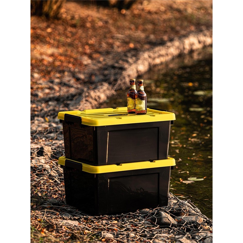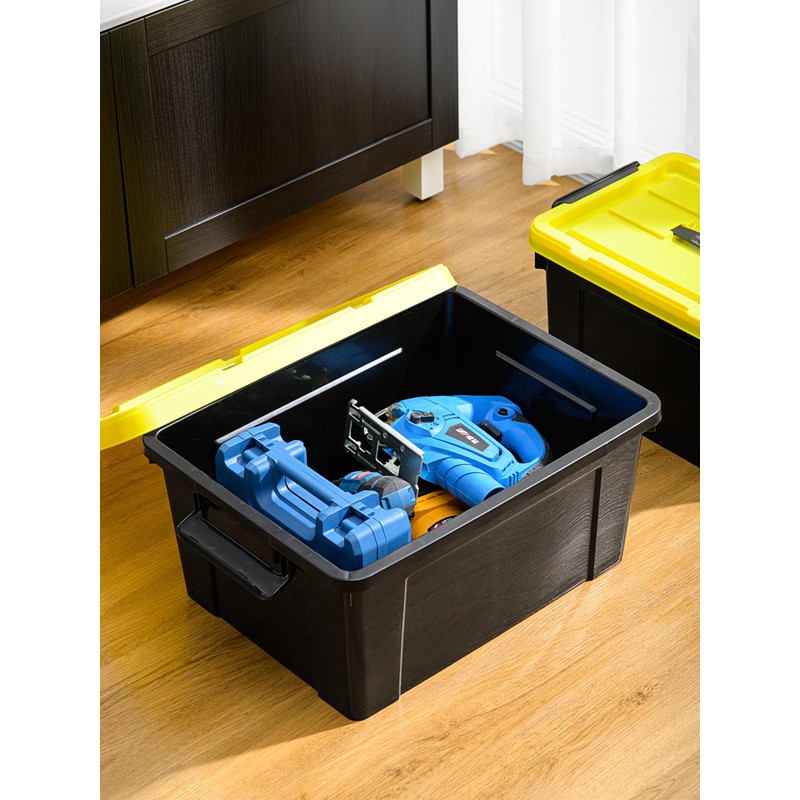 Cetomo 16Qt*4 Plastic Storage Bins, Tote Storage Box with Handle, Stackable, Black and Yellow, 16Quart-4 Pack