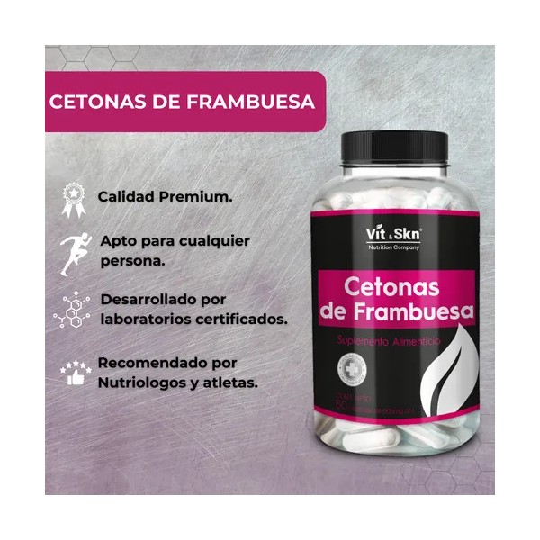 Cetonas De Frambuesa Skin Vit 60 Cápsulas, Súper Premium Sabor Sin Sabor