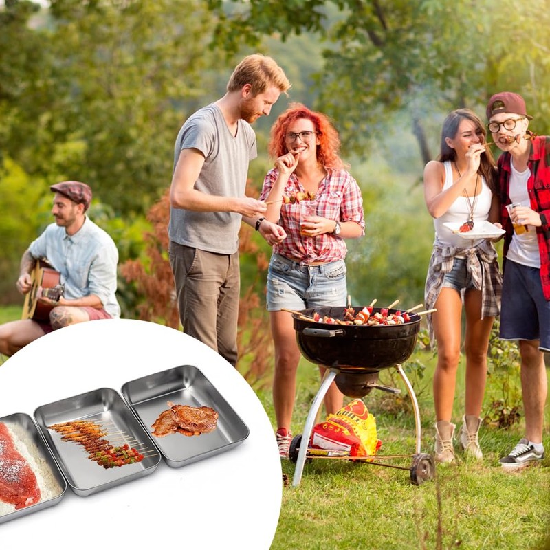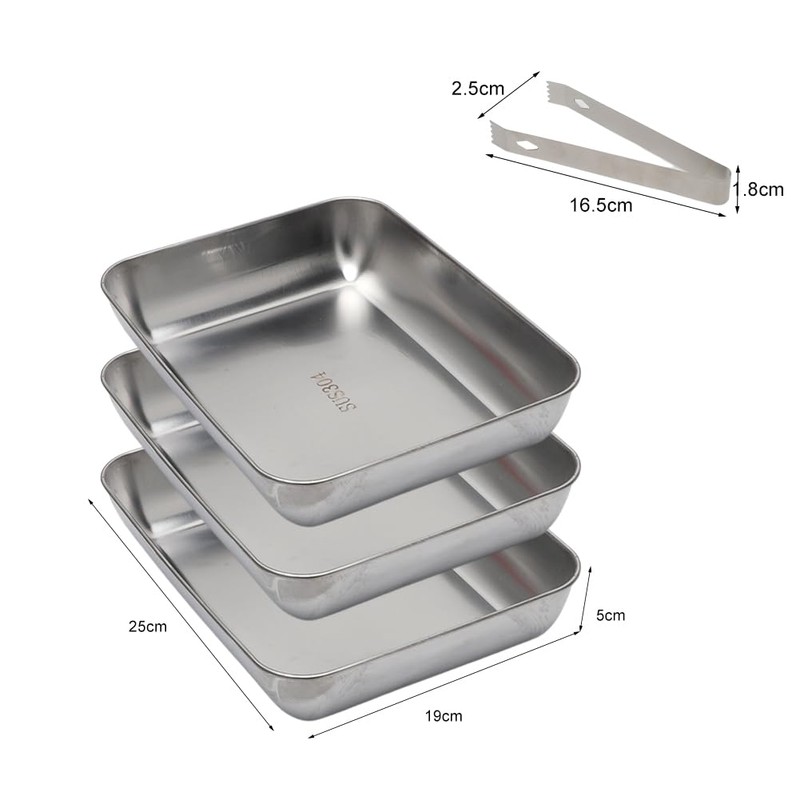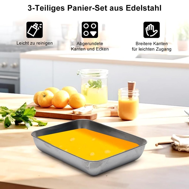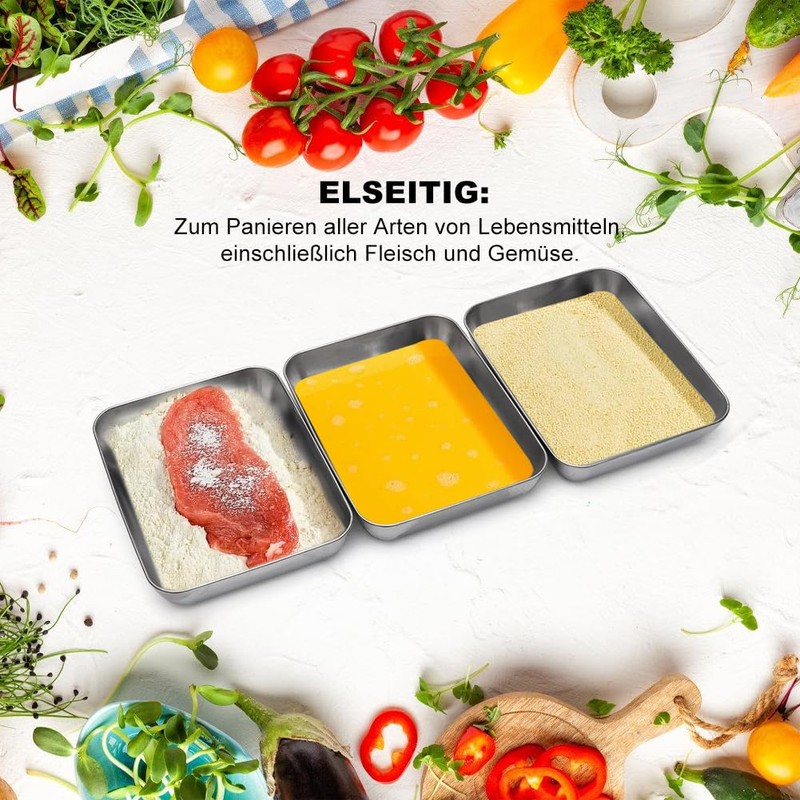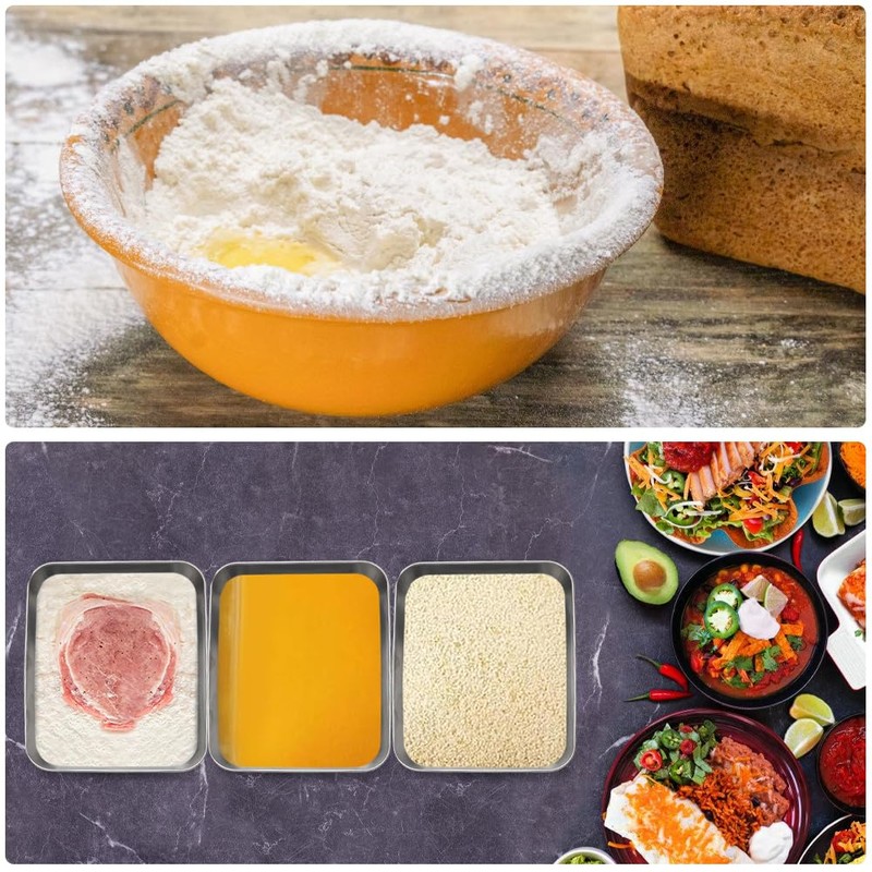 CEWROM Breading Bowls Set, Stainless Steel, Breading Set Bowls, Bowl for Breading with Clip, Stackable, Metal Breading Road, Rectangular (Pack of 3)