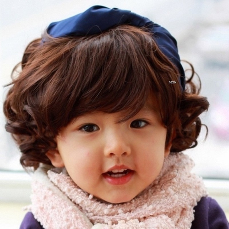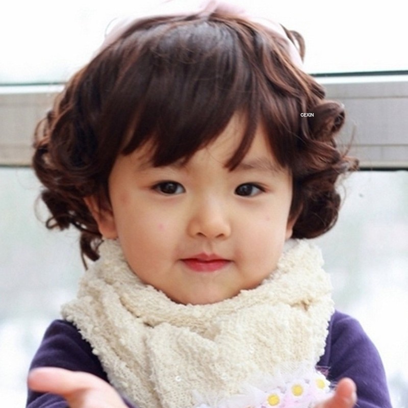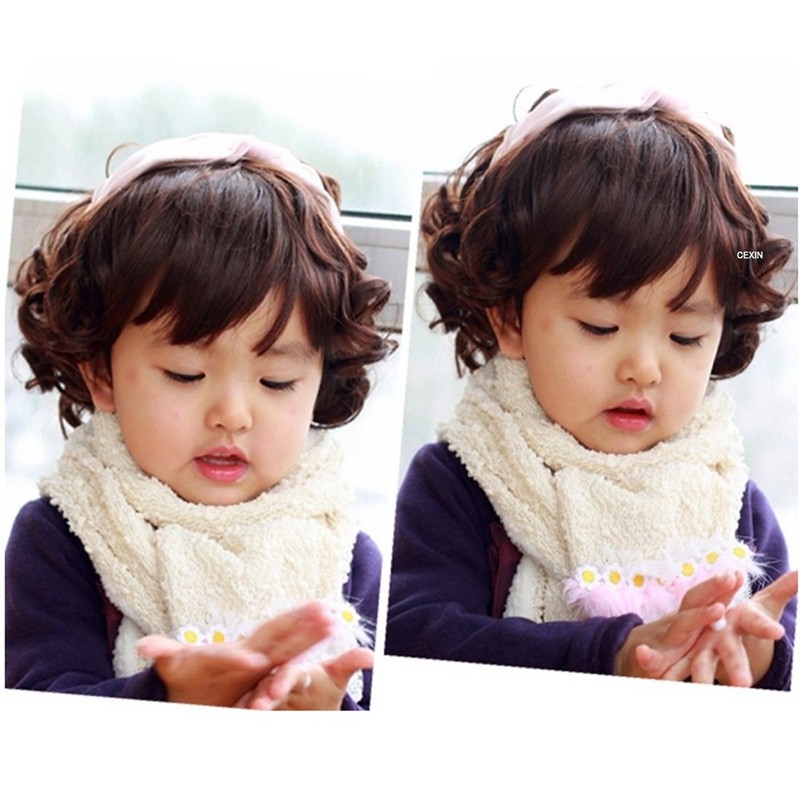 CEXIN Full Wig Baby Kids Wig Natural Short Curly Studio Photo Props Kindergarten Running Stylish Cute Natural Curl (Dark Brown)