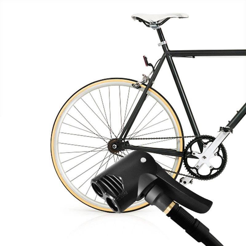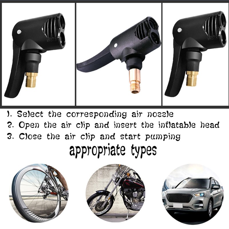 • Lock design: the tyre chuck has a lock. When in use, press the locking buckle to lock the tyre opening. The connection is stronger, you don't need to hold it, and inflating without hands is easy and fast.