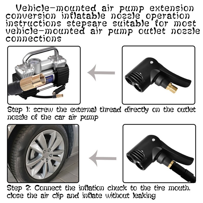 • Widely used: suitable for all car air pumps, universal male thread connection. Suitable for American and French tyre nozzles, inflating cars, motorcycles and bicycles.