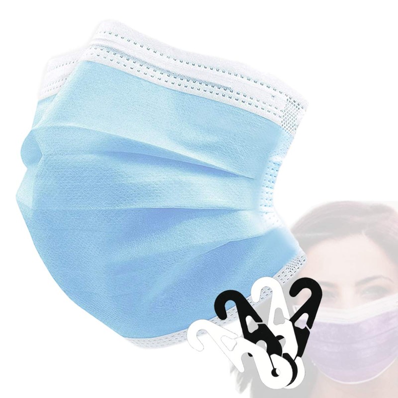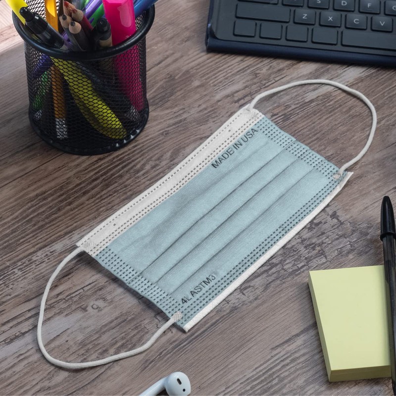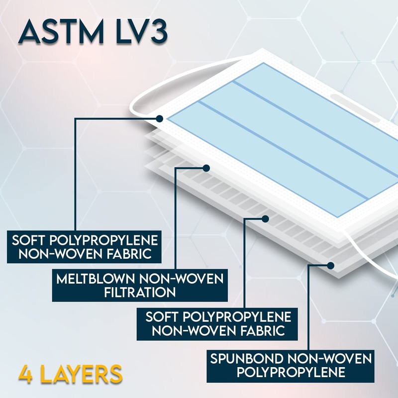 Ceybo ASTM Level 3 Disposable 4-Ply Face Mask - Made in USA Filtration Efficiency ≥ 98% For Travel, Offices, Business and Personal Care with Ear Savers (50 Pack, Light Blue)