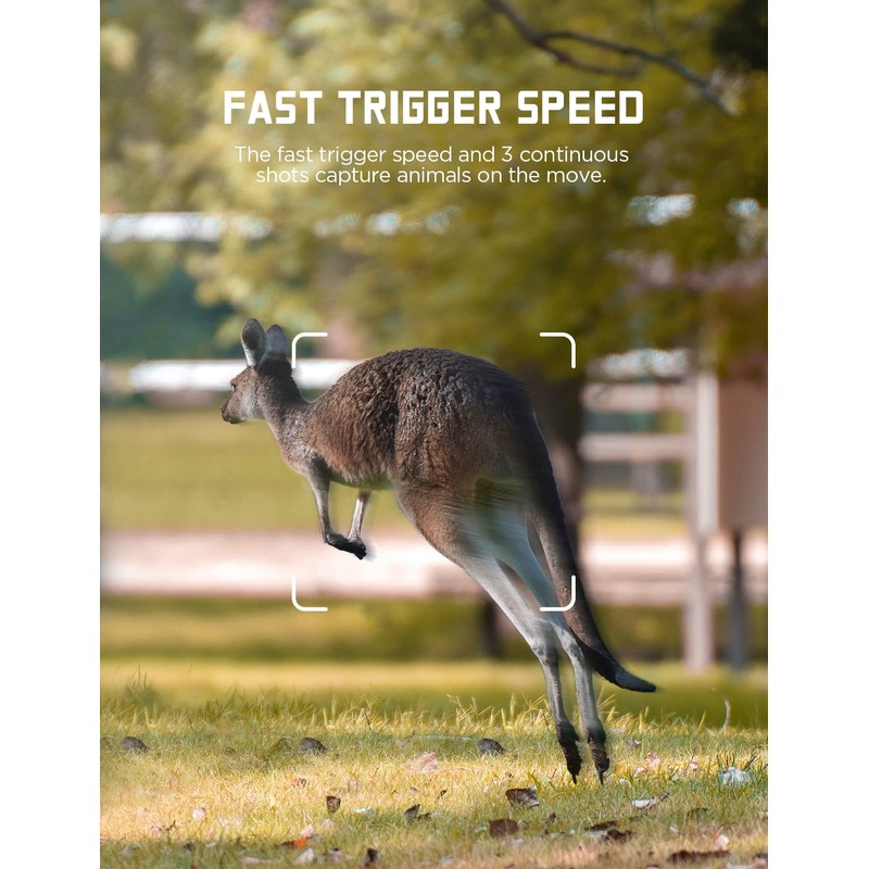 • FAST TRIGGER SPEED: CEYOMUR wildlife camera has a lightning-fast trigger speed and a snappy recovery time which is amazingly fast and makes sure that you don’t miss a single bit of the action whether it is fast moving or slow moving.