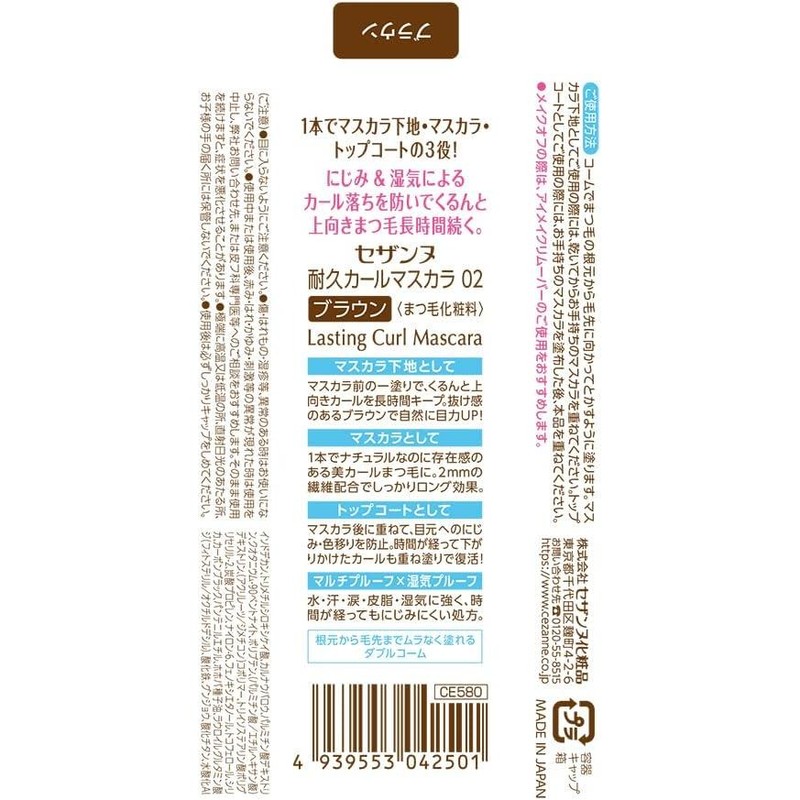 Cezanne Durable Curl Mascara 02 Brown 5.0g Smudge-resistant Long Fiber Contains Double Comb Shedding Brown Strong Curl