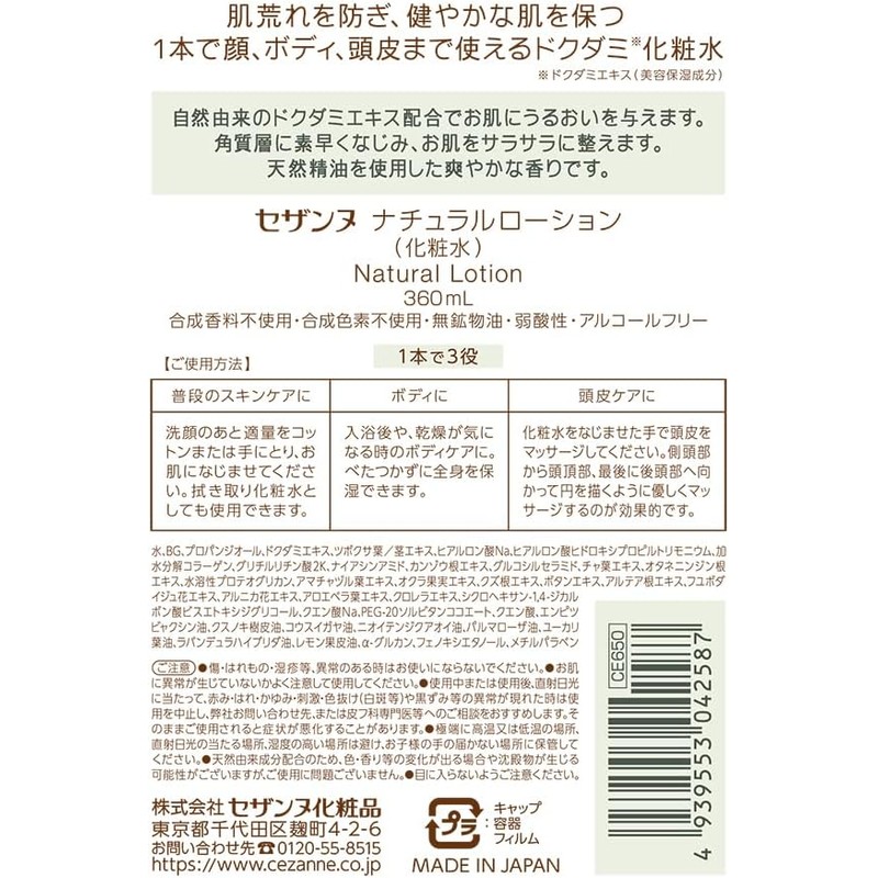 Cezanne Natural Lotion 360ml Dokudami Lotion Prevents rough skin Large capacity