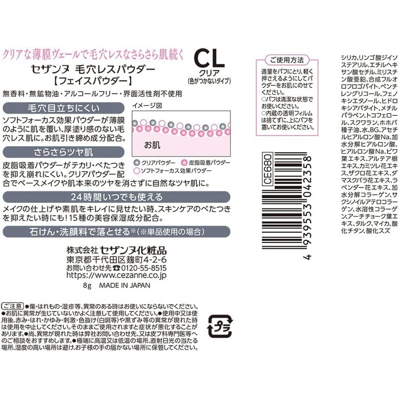 Model Name: Cezanne Poreless Powder CL Clear 8g No Color Powder