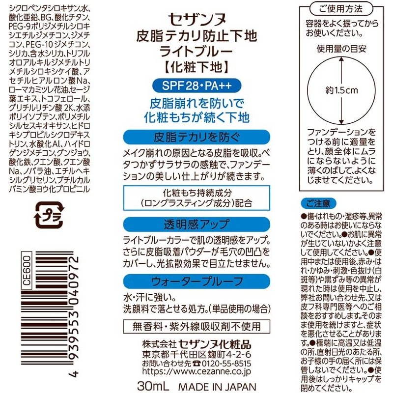 Cezanne Sebum and Shine Preventing Base Light Blue 30ml Anti-shiny/Break-resistant Makeup Base Single Item
