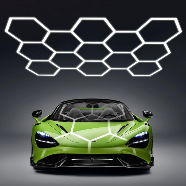 cezelux Hexagon LED Lights Hexagon Garage Lights,13 Honeycomb 54packs 6500K 432W,Hex Ceiling Light for Gym Basement Warehouse Auto Beauty Shop Car Detailing Hair Salon Workshop Lighting (hexagon-13)