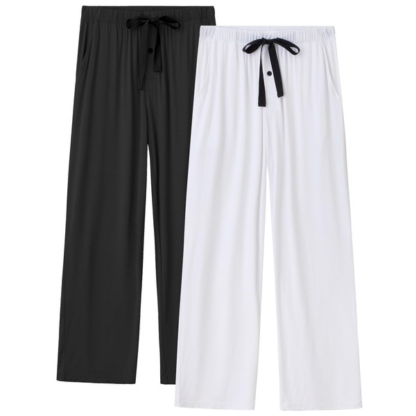 CF Mens Pajama Pants Bamboo Rayon Soft Comfy Sleep Lounge Pants Lightweight Pajama Bottoms Elastic Waistband with Pockets 2 Pack(BW,M)