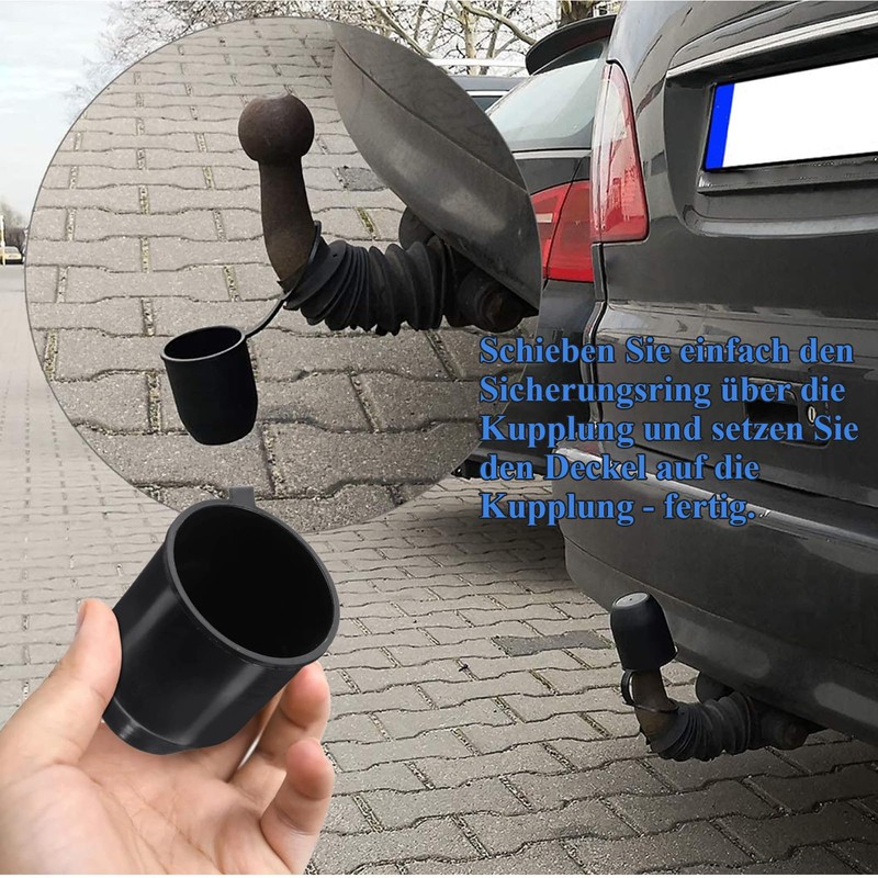 Towing Hitch Protective Cap with Locking Ring, Pack of 2, for 50 mm Ball Head Trailer Coupling, Dustproof and Waterproof, for Car, Motorhome, Trailer Ball Head Protection (Black)