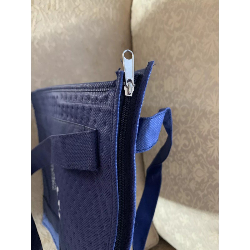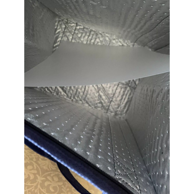 Has plastic “floor” that lifts up while bag is folded flat for storage.